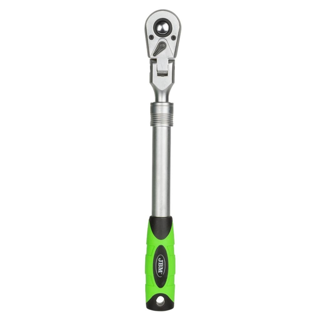 Дръжките се разширяват, за да осигурят по-дълъг обхват и увеличен въртящ момент. Разполага с 180° гъвкава глава, която позволява лесен достъп до крепежни елементи под почти всякакъв ъгъл. Бутон за бързо освобождаване позволява без усилие сваляне на накрайника. Бърз превключвател за напред и назад за лесна смяна на посоката за затягане или отпускане на гайка. Бърза и сигурна заключваща система за лесна употреба. Вътре в главата на всеки ратчет е 72-зъбен обратим механизъм, който изисква само 5° дъга.