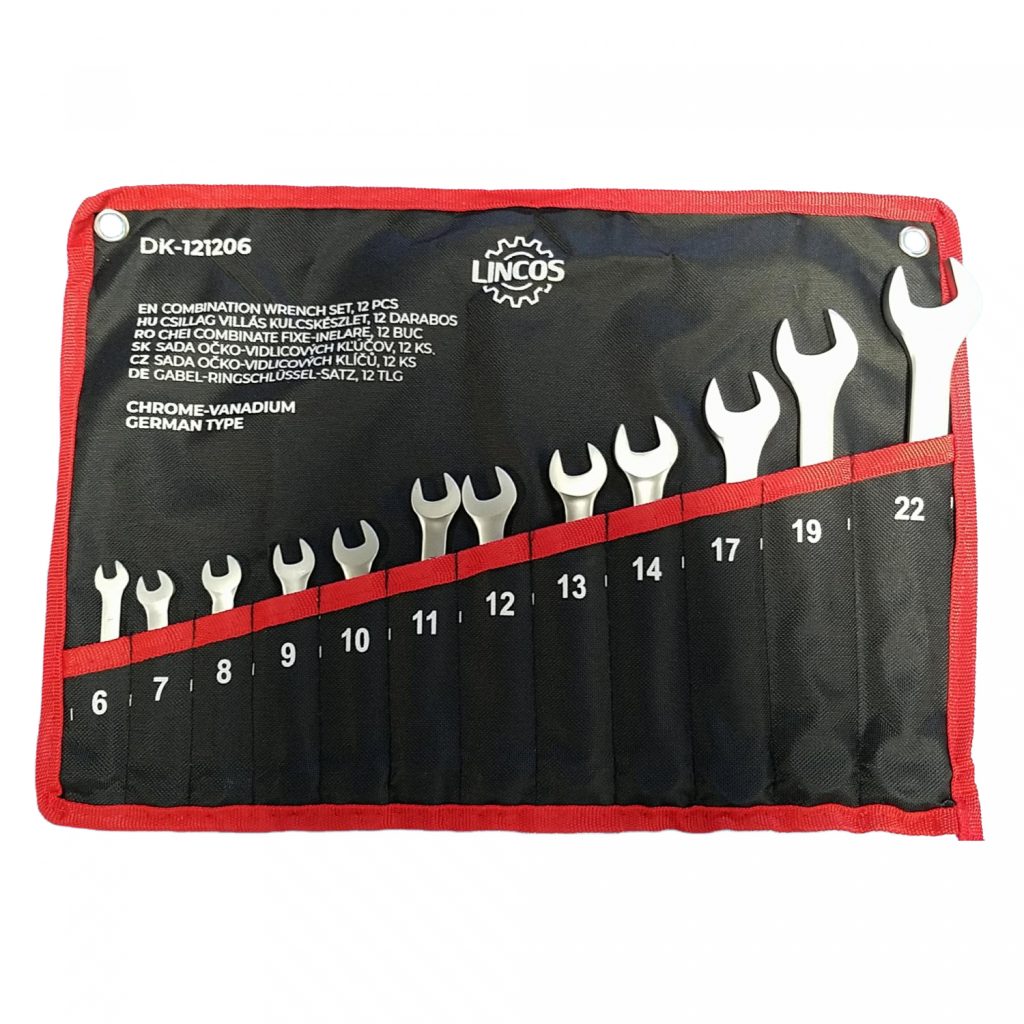 Комплект комбинирани ключове от хром-ванадий, 12 броя, размери 6, 7, 8, 9, 10, 11, 12, 13, 14, 17, 19, 22mm