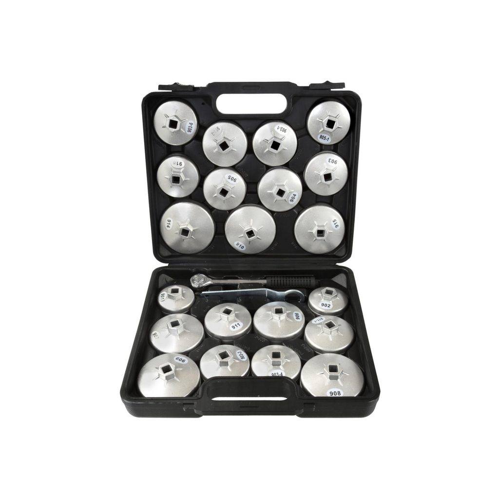 Комплект от 21 накрайника за сваляне на маслени филтри. Подходящ е за повечето леки автомобили, произведени на европейския, американския и азиатския пазар.