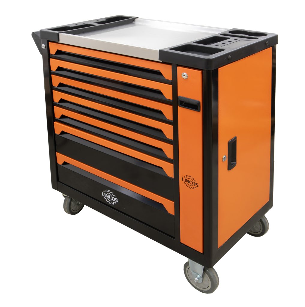 Със своето щедро пространство и 7 просторни чекмеджета, този инструментален шкаф предлага достатъчно място за съхранение на широк спектър от инструменти и оборудване. Независимо дали трябва да съхранявате ключове, отвертки, накрайници или други инструменти. Здравата конструкция осигурява дълготрайност и устойчивост, което го прави надежден избор както за лична, така и за професионална употреба. Всяко чекмедже е внимателно проектирано с плавно плъзгащи се механизми, позволяващи лесен достъп до вашите инструменти.