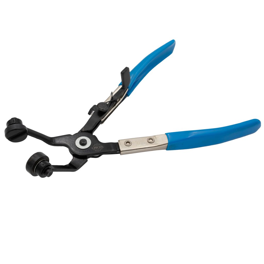 Проектиран за сваляне и поставяне на плоски лентови скоби за маркучи на труднодостъпни места. Квадратните челюсти имат въртящи се на 360° накрайници, които захващат скобите под всякакъв ъгъл.