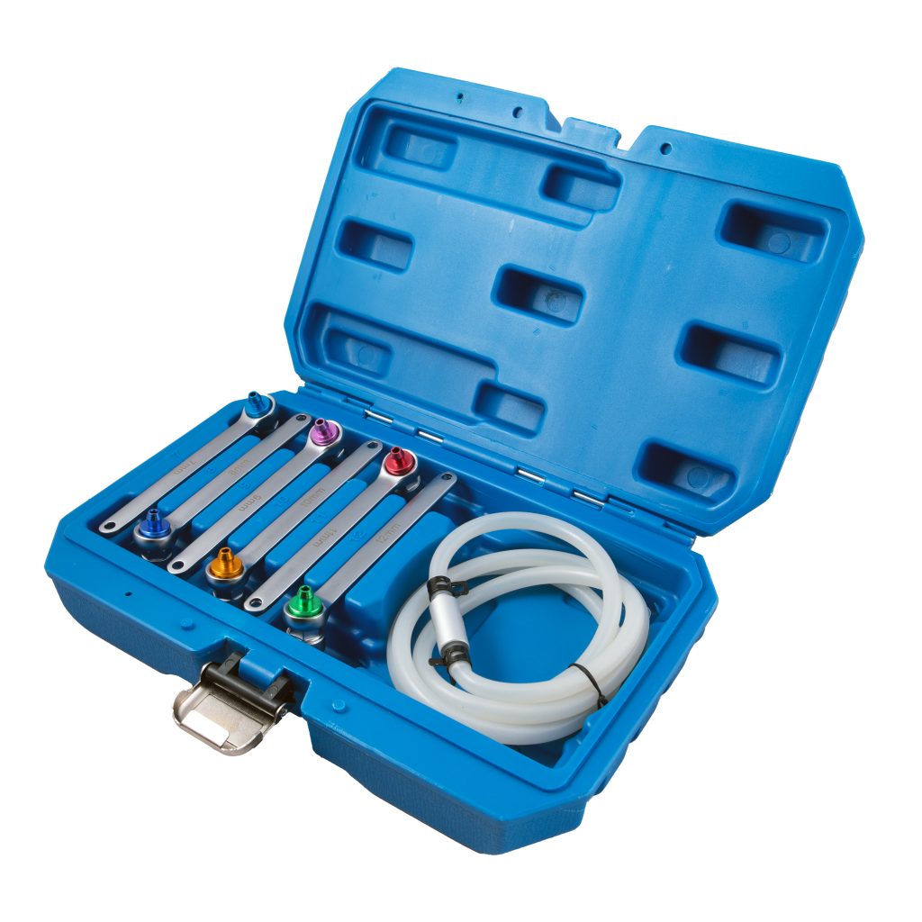 Комплектът от 6 части за източване на спирачна течност с накрайници и ключове помага за лесно източване на маслото, а с помощта на различните размери ключове, винтовете за източване на спирачната течност могат да бъдат лесно свалени, така че поддръжката да бъде по-бърза и ефективна.