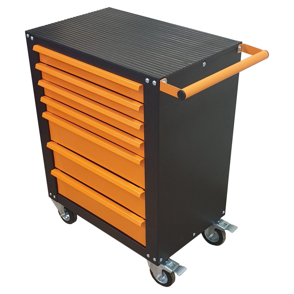 - Инструменталният шкаф е лесен за преместване с две свободно завъртащи и две спирачни колела