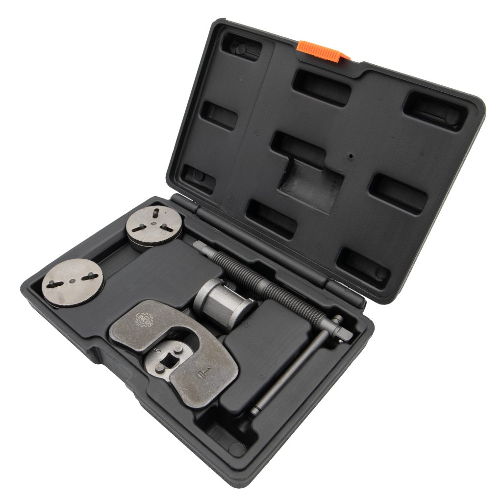 Този комплект е практично решение за професионално обслужване на спирачки, осигуряващ безопасно и правилно връщане на буталото, за да се избегне повреждане на механизмите на спирачния апарат.
