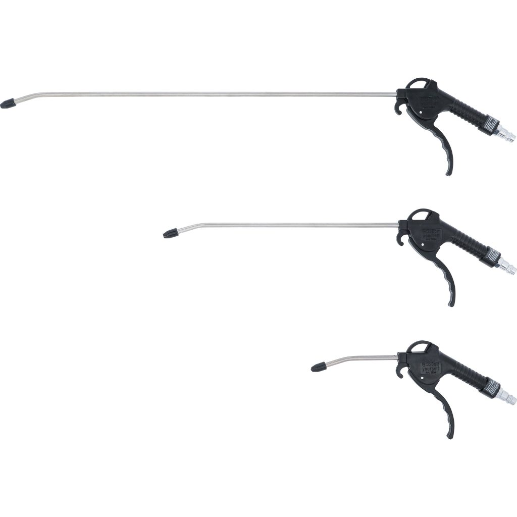 Този 3-компонентен комплект въздушни пистолети предлага универсалност и ефективност за различни задачи по почистване и поддръжка. Всеки пистолет е оборудван с метална тръба, която осигурява здравина и издръжливост, в комбинация с ергономична пластмасова дръжка за удобна и контролирана употреба.