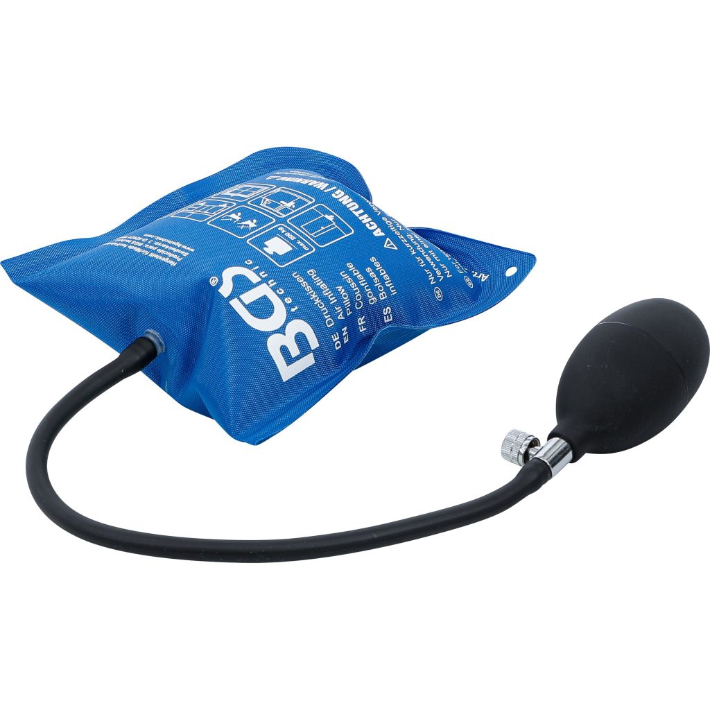 Въздушната възглавница за надуване с ръчна помпа, квадратна 165x150mm е многофункционален и мощен инструмент, проектиран за позициониране, фиксиране и разделяне на части от каросерията на автомобила, както и за отваряне на врати без повреждане и изравняване при инсталиране на прозоречни и вратични рамки.
