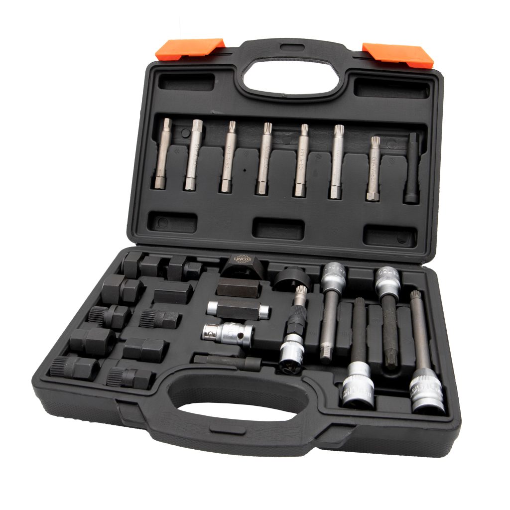 С помощта на комплекта за демонтаж на свободно въртящи се шайби на алтернатора, можете сигурно да задържите шайбата на място, докато разхлабвате и премахвате централната гайка или болт, който я закрепва към вала на алтернатора. Това ви позволява да замените или ремонтирате свободно въртящата се шайба при необходимост, осигурявайки правилната функционалност на алтернатора.