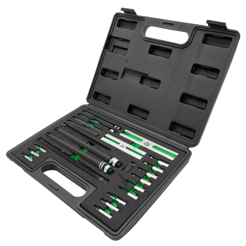Независимо дали работите по автомобилна, индустриална или машинна поддръжка, този комплект за изтегляне осигурява ефективно и безповредно премахване на лагери, особено в тесни или вградени пространства, където стандартните изтеглячи не успяват.