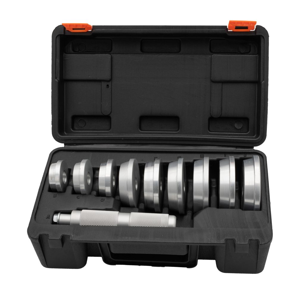 Прецизно монтиране: Комплектът предлага разнообразие от размери на накрайниците, което позволява прецизно и контролирано монтиране на лагерни пръстени и уплътнения. Накрайниците в комплекта са изработени от висококачествен материал, който осигурява дълготрайност и надеждност.