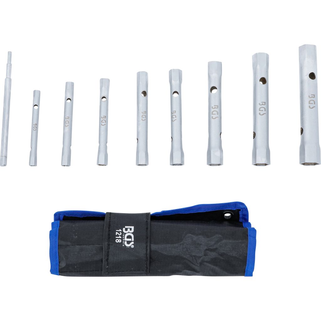 Този 9-частен комплект ключове с тръбен профил предлага разнообразие от метрични размери за механици и професионалисти, които се нуждаят от надеждно представяне и лесен достъп в ограничени пространства. Всяка част е завършена с сатен хромово покритие, което осигурява устойчивост на корозия и ненадеждно захващане за мазни или маслени ръце.