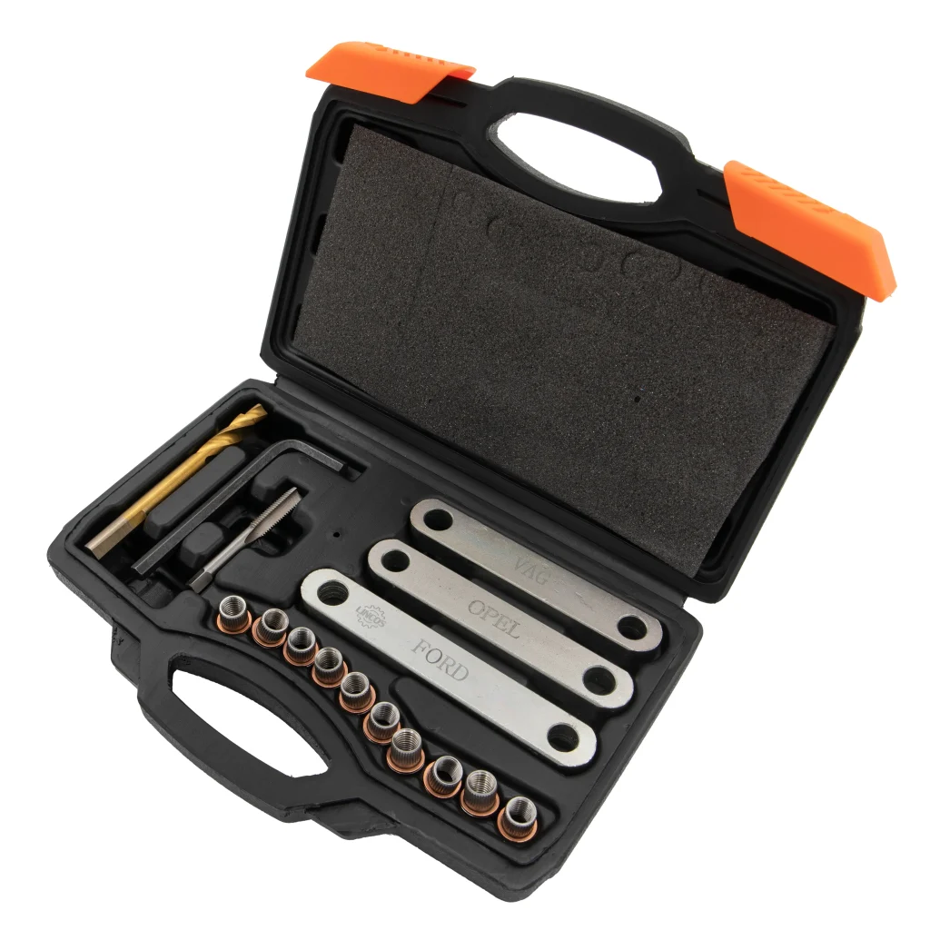 - Резбови вложки (10 бр.): M9x1.25 вложки за нарязване на нови резби.