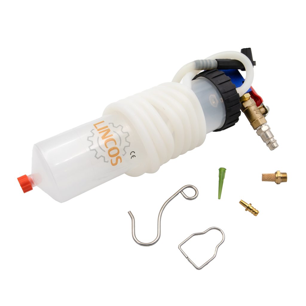 Уред за ефективна смяна на спирачна течност или обезвъздушаване на спирачната система в автомобили, мотоциклети и камиони.