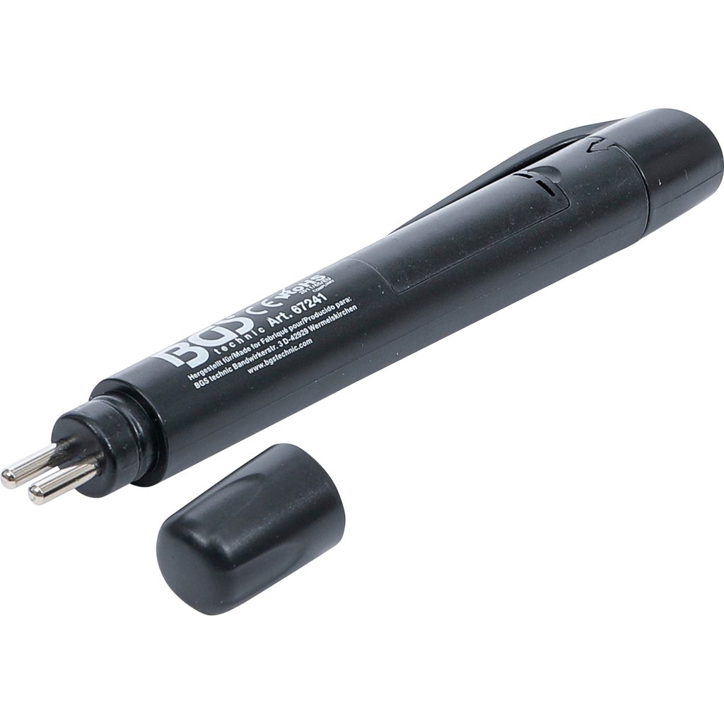 - Работата е проста: включете тестера, потопете сензорните накрайници в спирачната течност и моментално прочетете резултата чрез LED дисплея. Защитният капак помага да се запазят сензорите чисти и безопасни, когато не се използват.