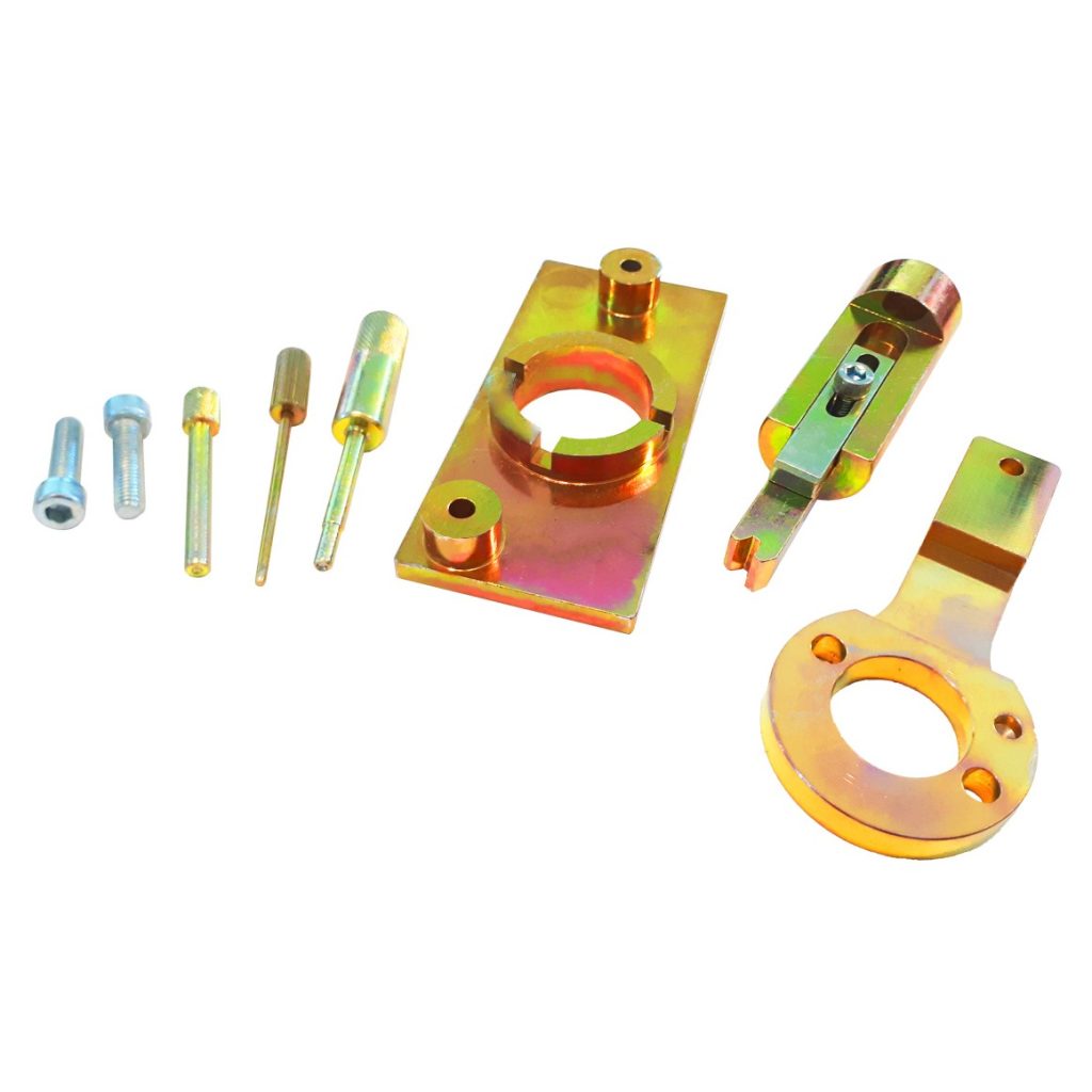 Задържа разпределителния вал в сервизна позиция по време на смяна на ремъка за задвижване на разпределителния вал. Комплектът също така съдържа инструмент, необходим за блокиране на маховика при превозни средства с автоматична трансмисия.