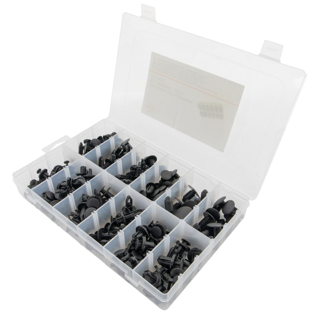 • Комплект от 192 пластмасови клипса – Покрива 12 често използвани типа и размера