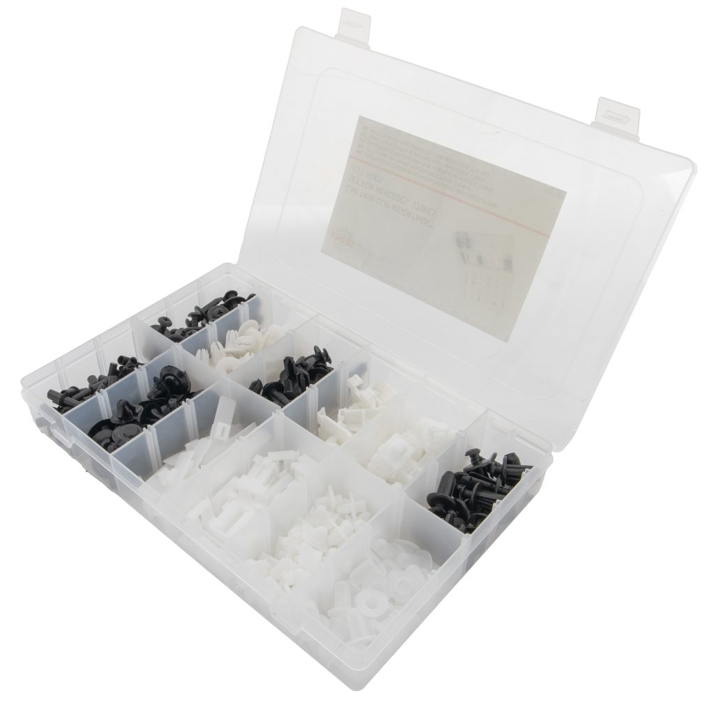 • 270-частен комплект за клипсове – Проектиран специално за автомобили Mercedes-Benz