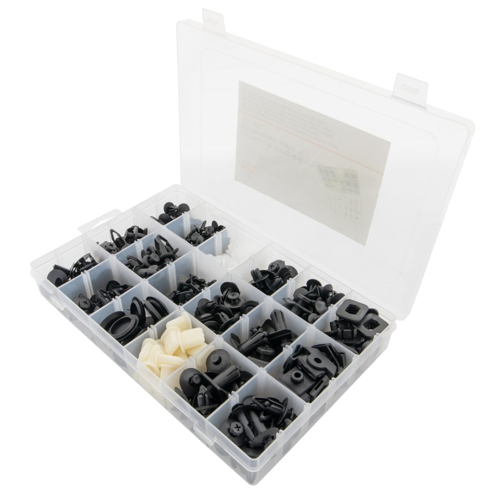 Произведени от висококачествена пластмаса и найлон, тези клипсове осигуряват сигурно и фабрично качество на закрепване, предотвратявайки хлабави панели и осигурявайки професионален завършек. Пластмасовият контейнер за съхранение поддържа клипсовете организирани и лесно достъпни, което прави този комплект перфектен за механици, автосервизи и любители на автомобилите.