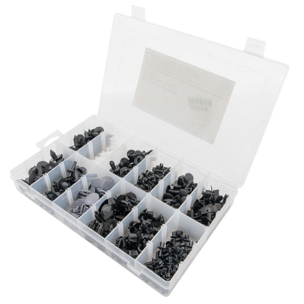 - Асортимент от 350 части, покриващи основни клипсове за облицовка на Volvo
