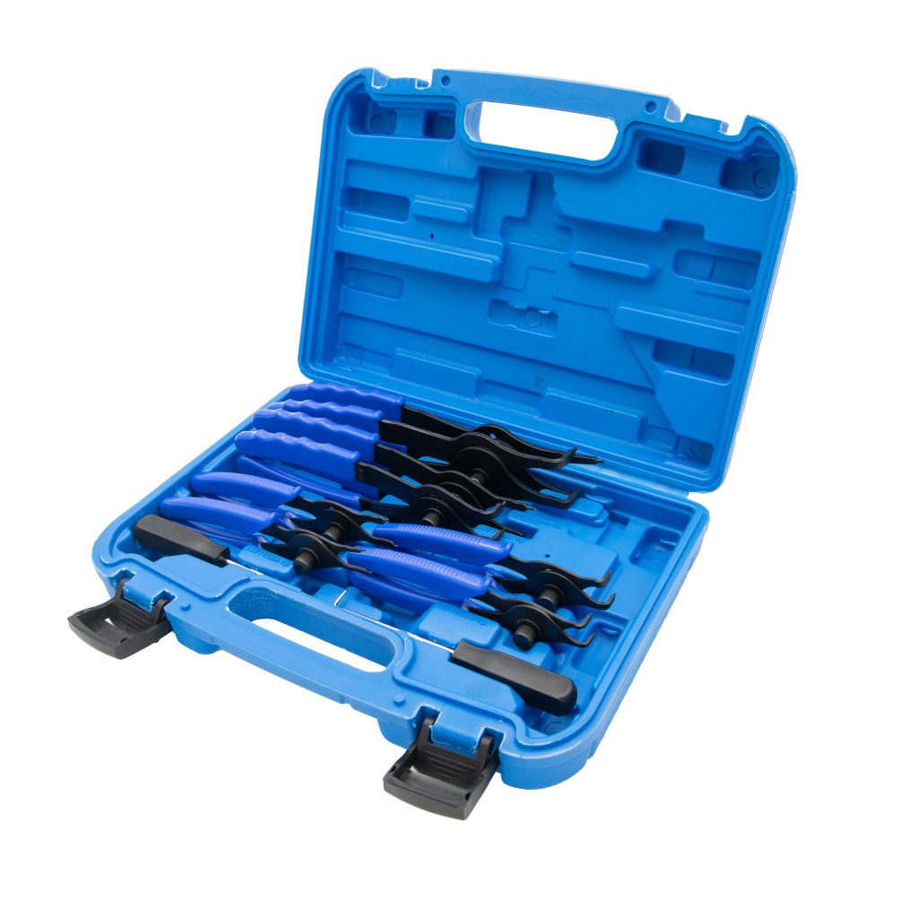 Този комплект включва набор от клещи с различни размери и конфигурации на накрайниците, осигурявайки съвместимост с различни приложения за snap ring. Тези клещи са прецизно изработени от качествени материали, за да осигурят дълготрайност и дългосрочна производителност. Извитите и прави накрайници предлагат многофункционалност за достъп до snap ring в различни ориентации и ъгли.