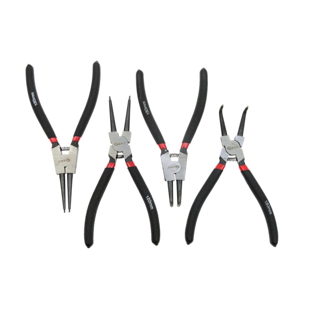 Комплект клещи за циркулярни пръстени 7″ (180mm) включва клещи с прави и ъглови накрайници за вътрешни и външни циркулярни пръстени.