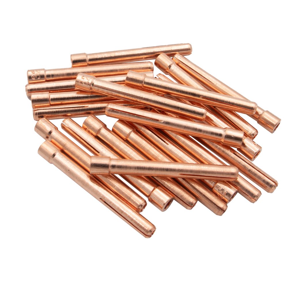 Цанга за WP-17 TIG горелка, 10N25, за волфрамови електроди с диаметър φ3.2mm. Осигурява стабилност и прецизност за постоянни заваръчни резултати.