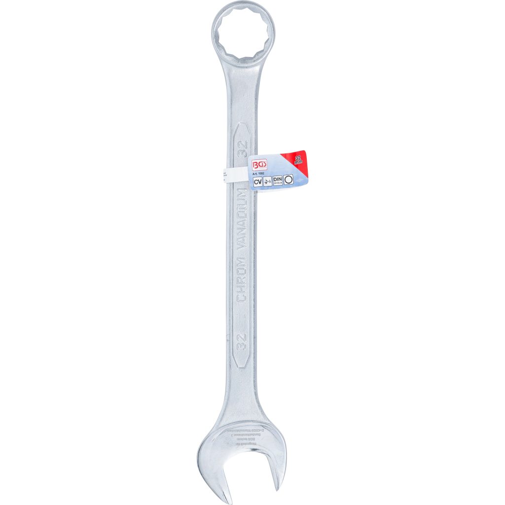 32 мм комбиниран ключ, горещо кован от хром-ванадиева стомана, 12-точков накрайник под ъгъл от 15°, с полирани челюсти.