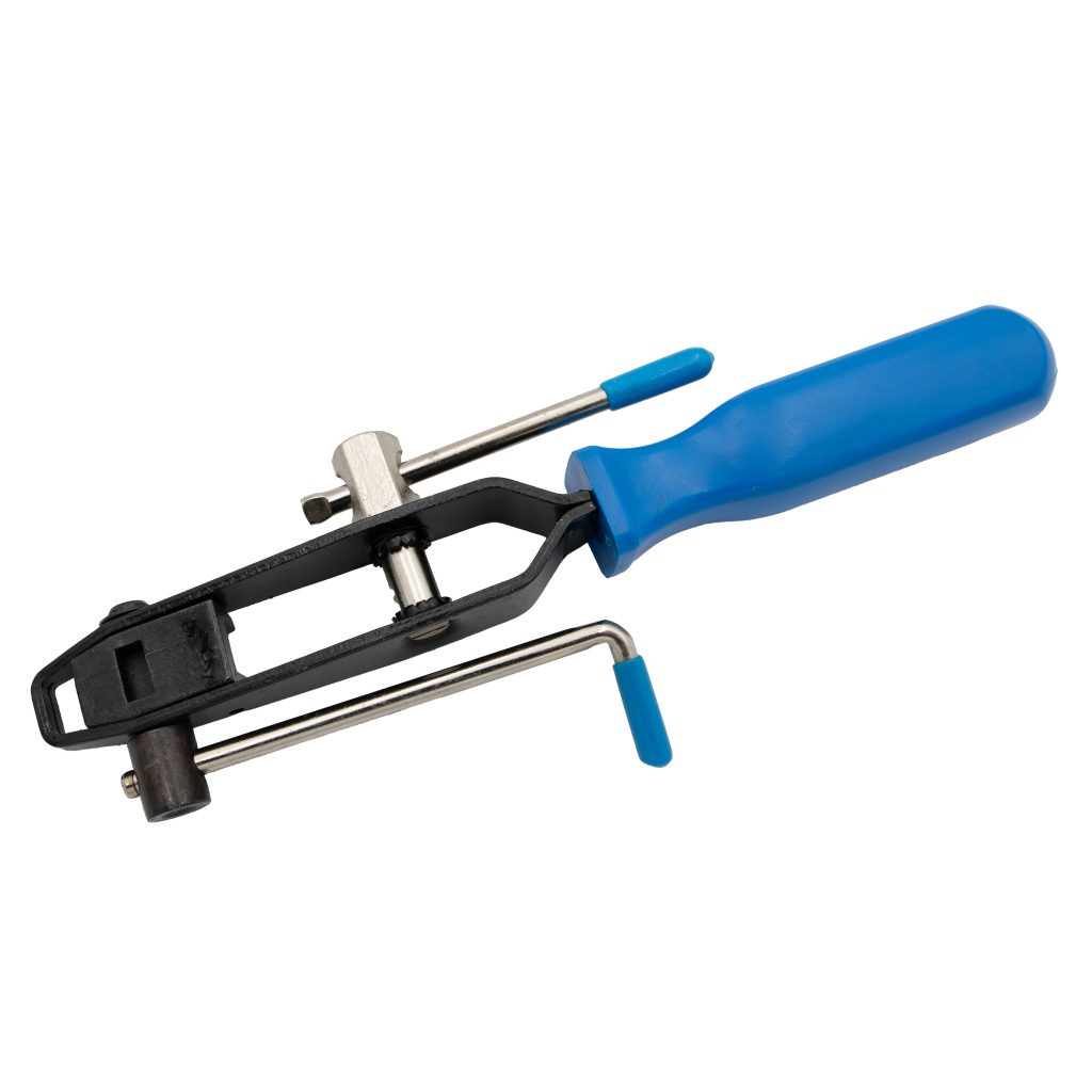 Инструмент за затягане на маншони на ШРУС с резачка е подходящ за инсталиране и затягане на лентови скоби. Разполага с вградена резачка за рязане на лента. С вградения механизъм за рязане и навиване, лентата може да бъде издърпана и отрязана бързо и ефективно.