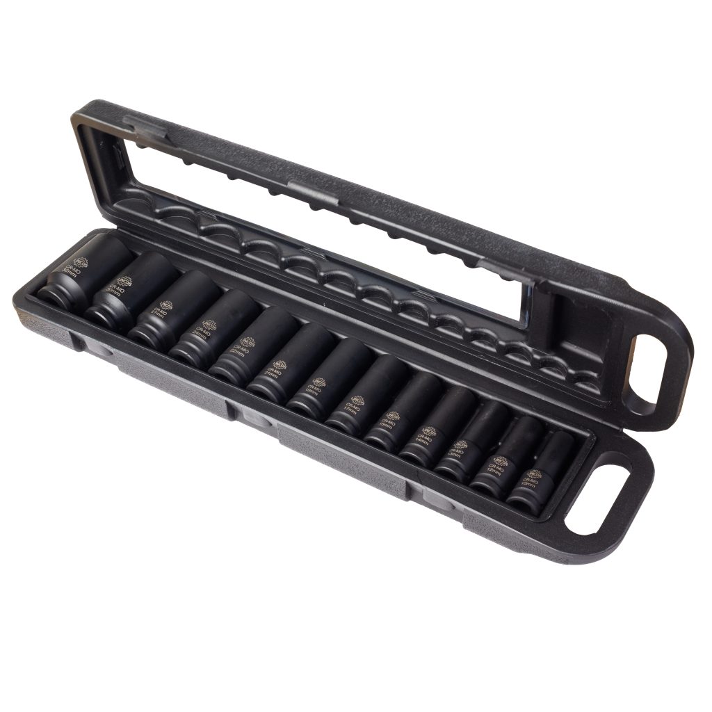 Този 13-частен комплект дълбоки ударни накрайници 1/2″ е проектиран за професионална употреба, където е необходим достъп до дълбоко разположени крепежни елементи. Включва широк диапазон от метрични размери от 10mm до 32mm, което го прави подходящ за автомобилни, индустриални и поддържащи приложения.