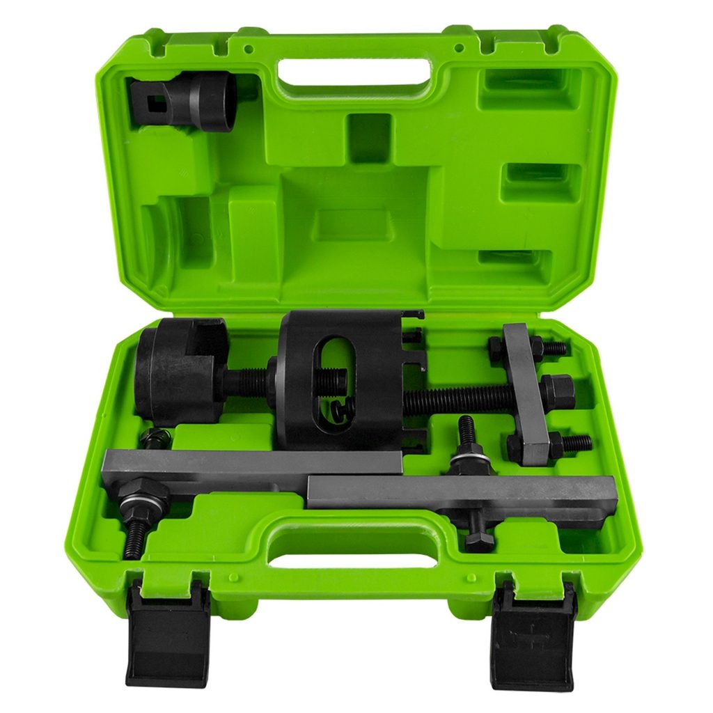 Специализирани инструменти за ремонтни дейности на DSG трансмисии за сглобяване и разглобяване на корпуса на съединителя. За обслужване на 7-степенни трансмисии (код 0AM) в Golf (2004-), Golf Plus (2005-), Audi A3 (2004-) и Touareg (2003-) с 6-степенна трансмисия (код 08D). Изработени от висококачествени материали. Поставят се в куфар за съхранение.