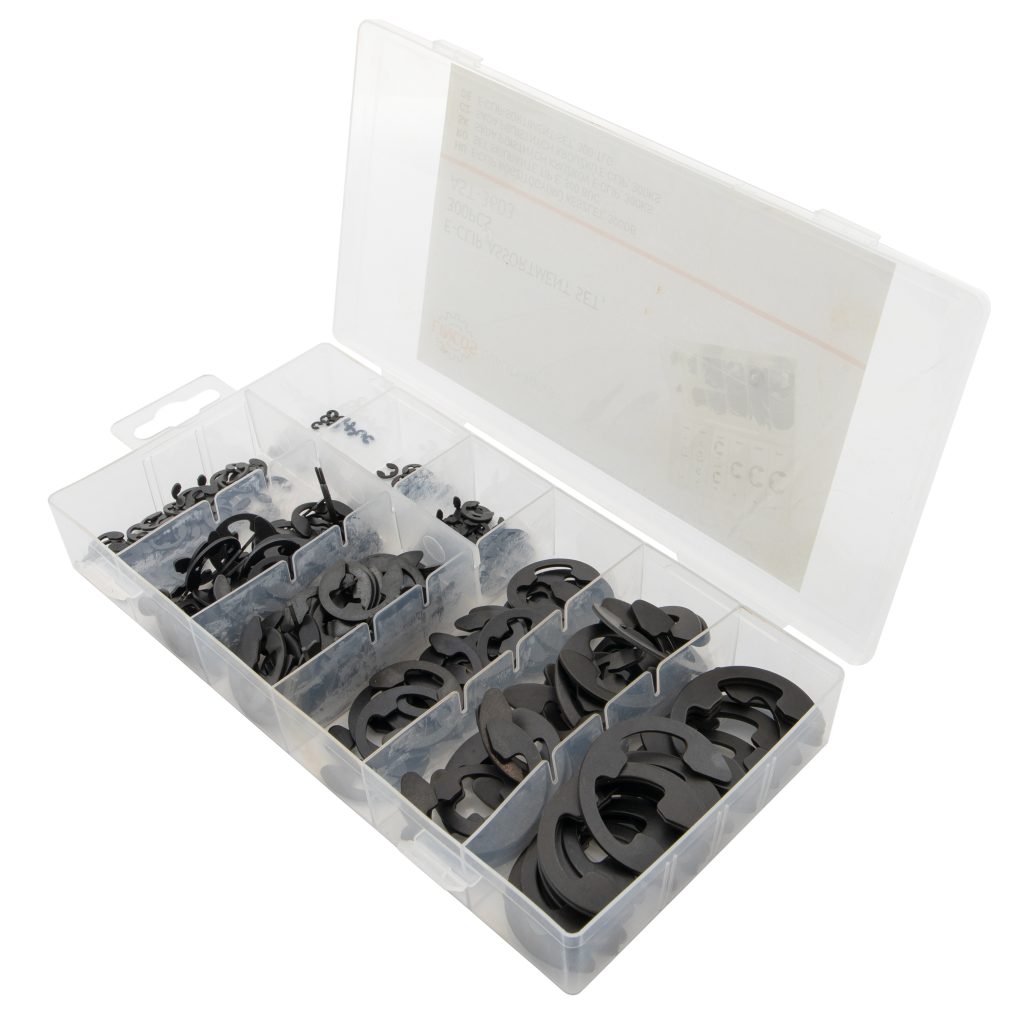 Изработени от висококачествена, корозионно-устойчива стомана, тези E-клипсове осигуряват издръжливост, здравина и сигурно захващане. Пластмасовата кутия за съхранение поддържа всички размери организирани и лесно достъпни, което я прави удобно решение за професионалисти и любители на DIY.