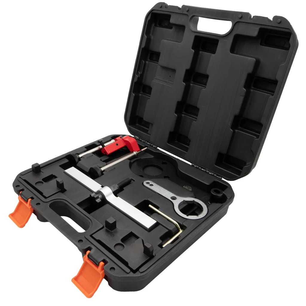 Комплектът има уникален дизайн, който позиционира и завърта разпределителния вал до точното положение на ГМТ (горна мъртва точка), осигурявайки оптимална работа на двигателя. Този инструмент позволява на потребителите да завъртат централния болт без затруднения. Тази функция гарантира стабилен захват и прецизно завъртане. Специално проектиран за двигатели BMW N63/S63/N74. Изработен от висококачествени материали, този инструмент е създаден да издържа на интензивна употреба и да служи на професионалисти за продължителни периоди.