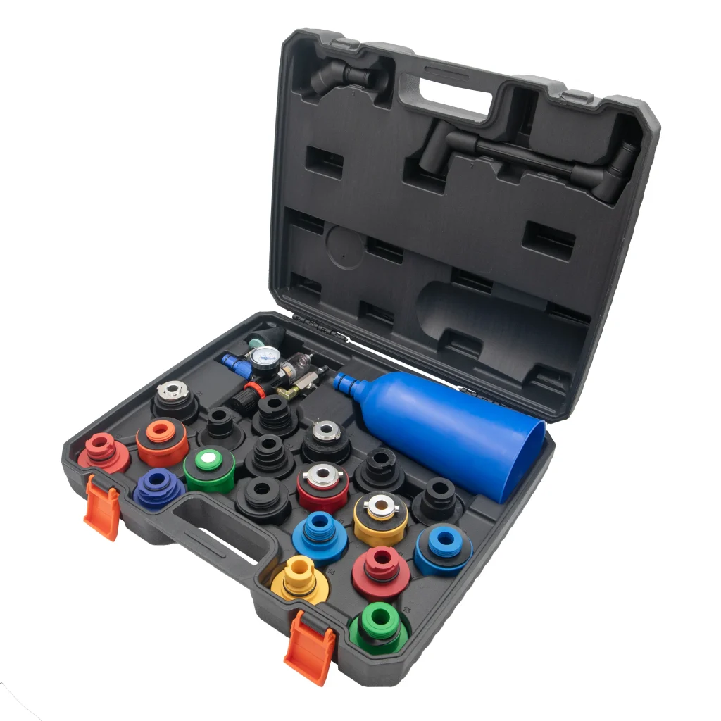 Това е идеалното решение за чисто и прецизно наливане на двигателно масло, предотвратявайки разливи и загуби по време на рутинна поддръжка. Комплектът включва 24 различни елемента, осигуряващи съвместимост с широка гама от превозни средства и видове двигатели.