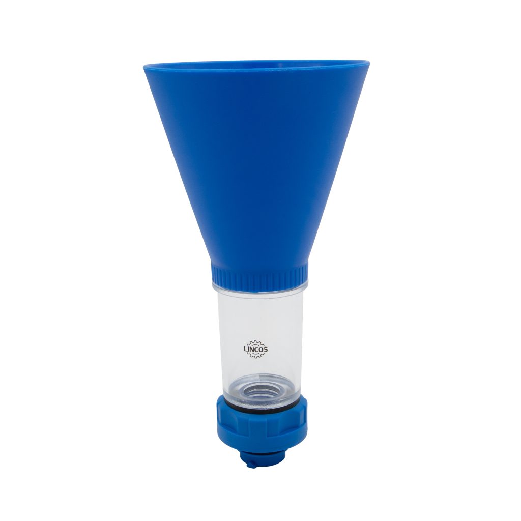 Прозрачната камера ви позволява да следите потока на маслото, а широкият диаметър осигурява по-бързо наливане на масло в сравнение със стандартните фунии.