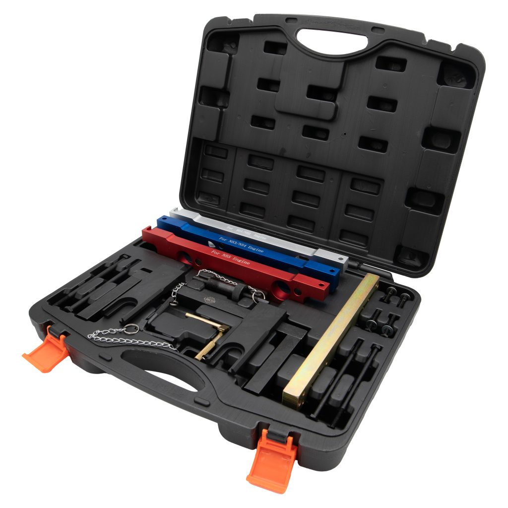 Този комплект инструменти е специално проектиран за широка гама от BMW 2.5 и 3.0 верижно задвижване, шестцилиндрови, двувалови бензинови двигатели. Подходящ е за използване с Valvetronic двигатели N51/N52/N52K и директно впръскване двигатели N53/N54/N55.
