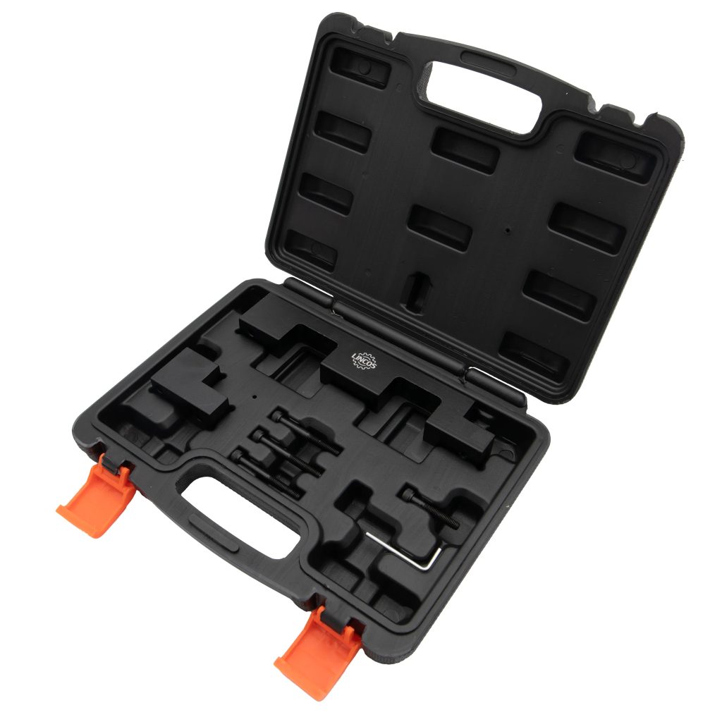 Заключване на разпределителния вал: Включва инструменти за заключване на разпределителните валове в тяхната синхронизирана позиция, което е от съществено значение за правилната смяна на ангренажната верига.