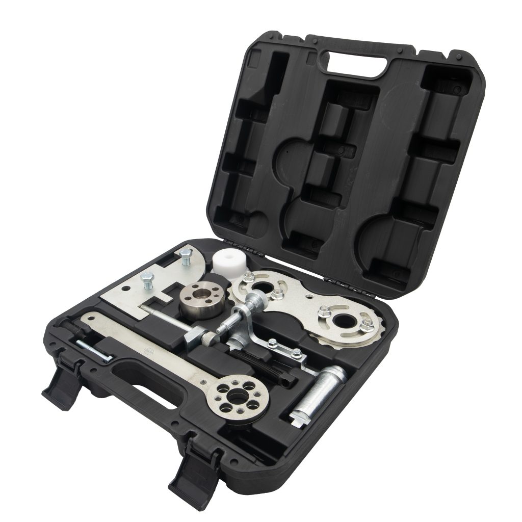 Този комплект инструменти за синхронизация на двигатели е проектиран за двигателя Volvo B4204, като осигурява точното подравняване на разпределителния и коляновия вал. Позволява прецизна настройка на синхронизацията на двигателя, предотвратявайки повреди, причинени от неправилно подравняване.