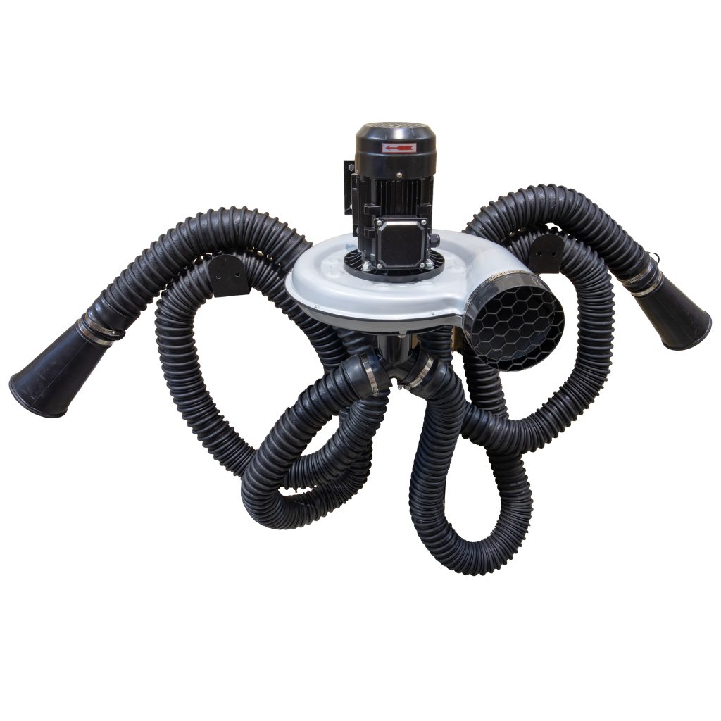 Продуктът Simple Direct Extractor е идеалното решение за вентилация за малки до средни работилници. Тази система с двоен маркуч е подходяща за извличане на отработени газове от автомобили с двойни ауспуси или при работа с два различни автомобила с единичен ауспус едновременно. Компактният му дизайн позволява бърза и лесна инсталация на стени или тавани, спестявайки ценна работна площ. Оснащен с удароустойчив маркуч с диаметър 76mm, който се удължава до 4 метра, този екстрактор предлага разширен обхват и гъвкавост за стационарни системи за отработени газове. Кръглата, накрайник от гума осигурява сигурно прилягане за различни ауспуси, гарантирайки ефективно извличане на вредни изпарения. Устройството поддържа максимален диаметър на ауспуха от 120mm, което улеснява оптималния въздушен поток. Захранвано от мощен мотор с 0.55KW, работещ на 400V/50Hz/3-фазово електрическо захранване, този екстрактор осигурява надеждно и ефективно представяне при ниски оперативни разходи. Това го прави функционален и икономичен избор за всяка работилница, която иска да подобри качеството на въздуха и безопасността.