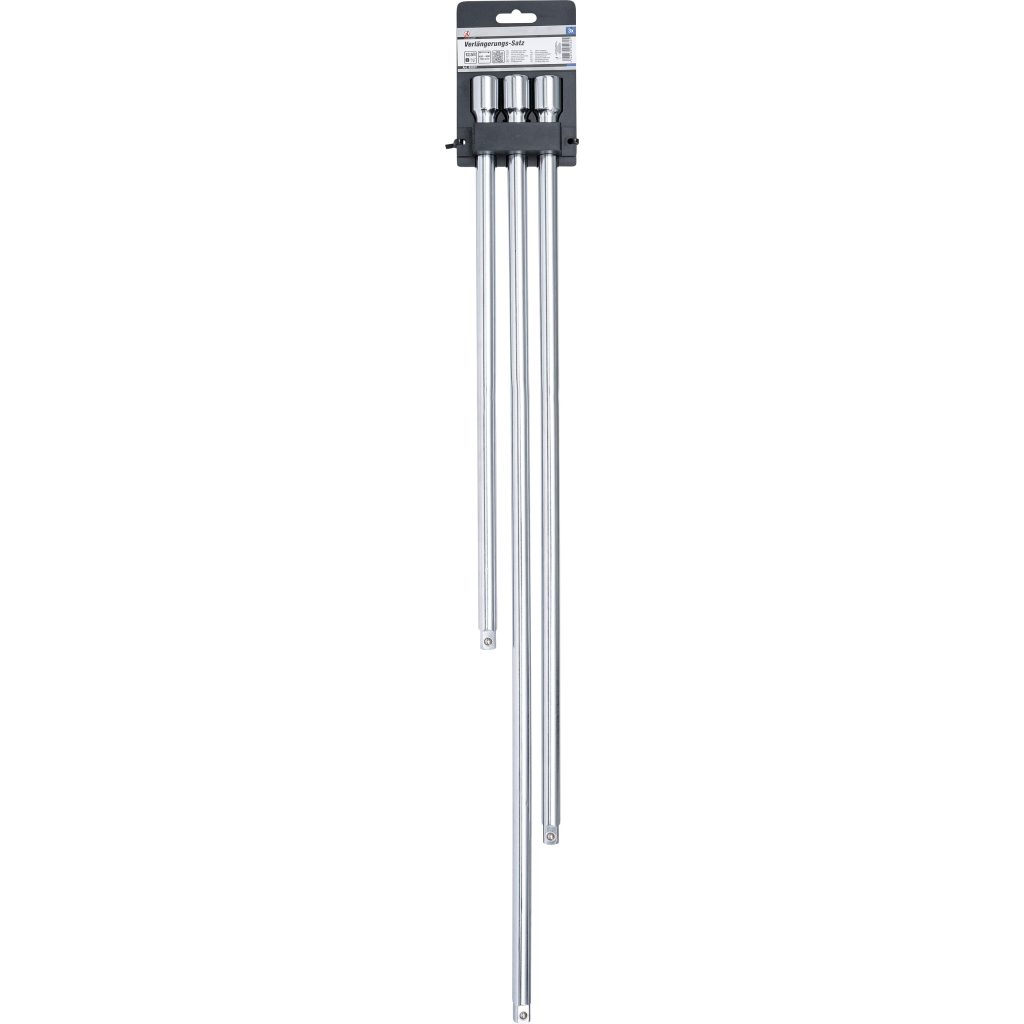 Комплект удължители от 3 части, 12.5mm (1/2") захват, дължини 450/600/750mm, от въглеродна стомана, с полирано хромово покритие.