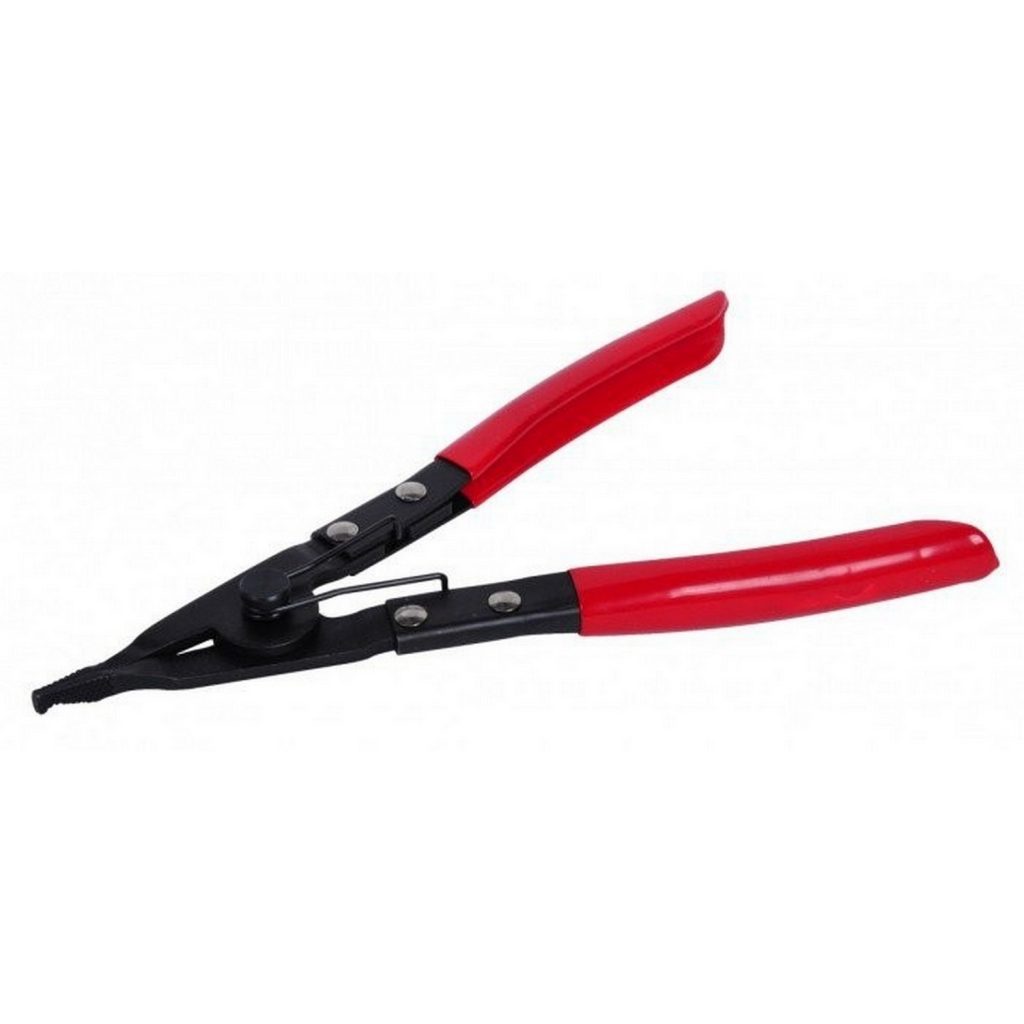 Клещи за стопорни пръстени, с накатка и самозатварящ механизъм за външни стопорни пръстени. Челюстите имат дълбоки зъбци на външната страна на върха, за да държат стопорния пръстен сигурно.