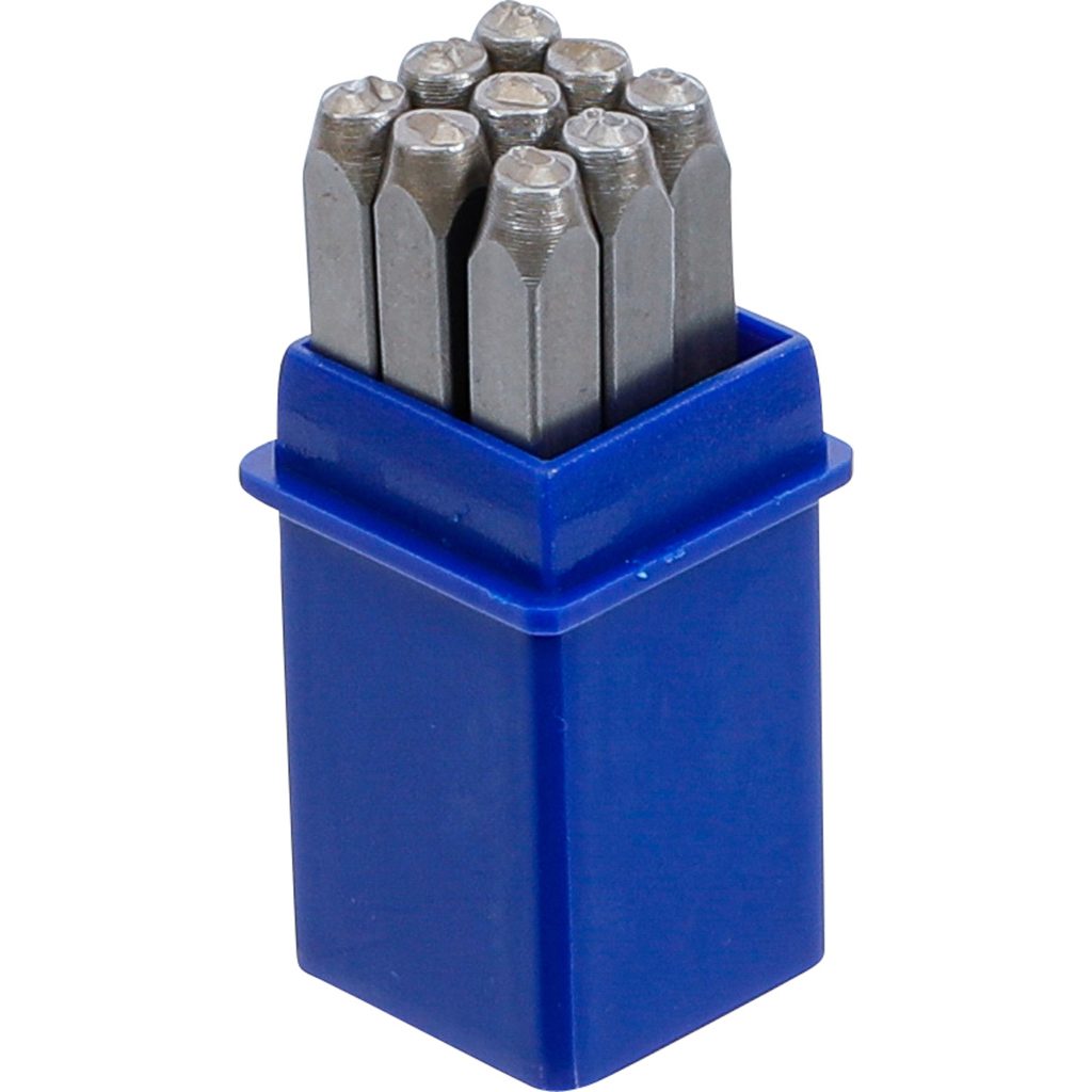Комплектът цифрови щанци, 3mm предлага надеждно решение за гравиране на числа върху стоманени и железни компоненти. Изработен съгласно стандартите на DIN 1451, този комплект осигурява прецизни и равномерни отпечатъци на числа чрез офсетно гравиране с ограничение на дълбочината. Предлага се в компактен пластмасов куфар, идеален за организирана употреба в работилници или индустриални среди.