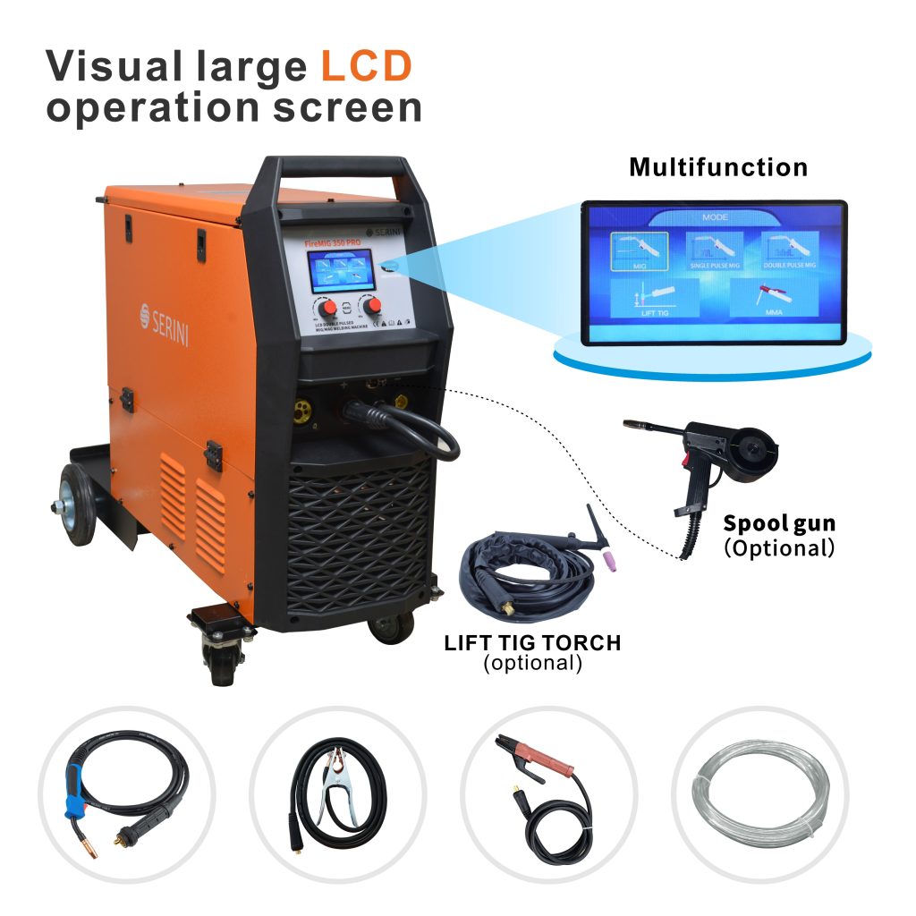 - Тази машина поддържа множество заваръчни процеси, включително MIG, Single Pulse MIG, Double Pulse MIG, Lift TIG и MMA, което я прави изключително адаптивен инструмент за различни заваръчни приложения.
