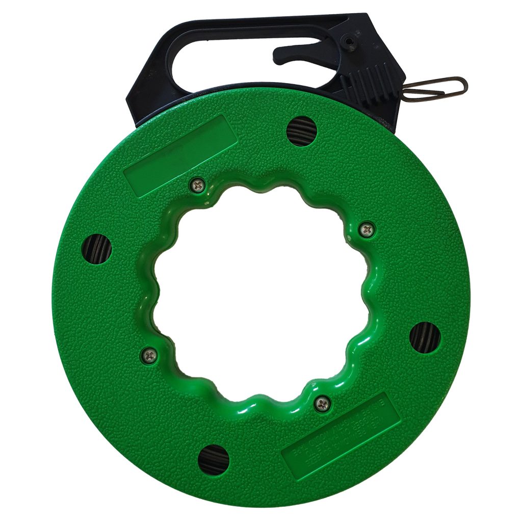 15м стоманен риболовен кабел в пластмасов зелен калъф. Плоска метална лента, размер 3x1мм. Размер на главата за вмъкване 40x10x3мм.