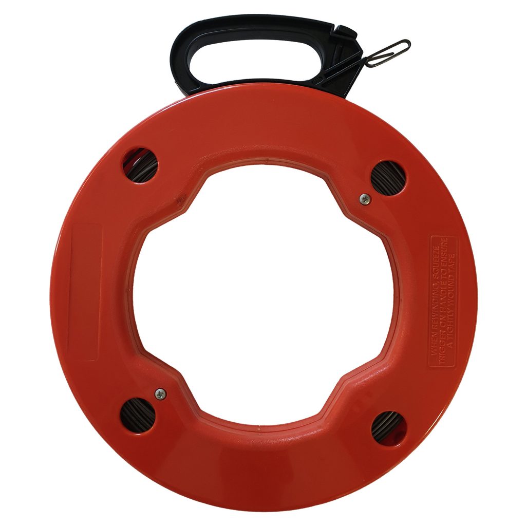 60м стоманен риболовен кабел в пластмасов червен калъф. Плоска метална лента, размер 3x1mm. Размер на главата за вмъкване 40x10x3mm.