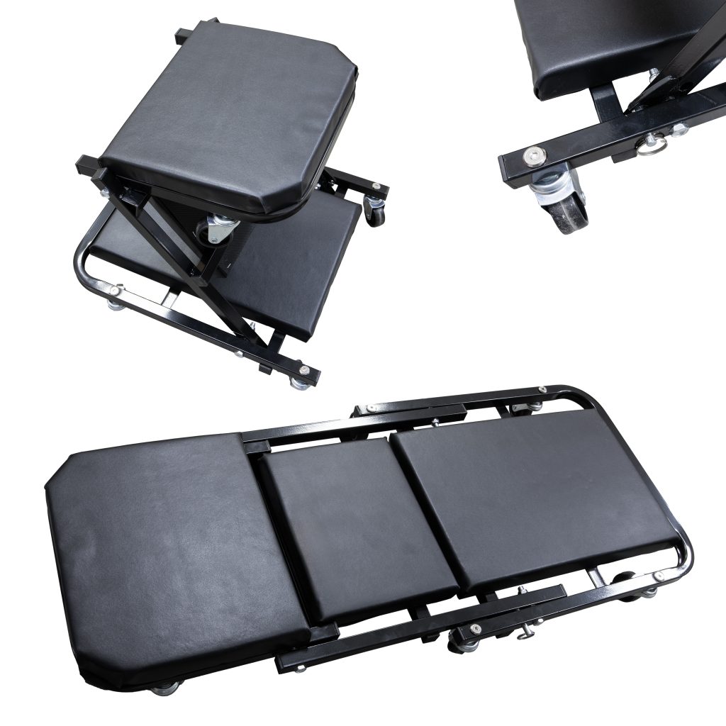 Разполага с лек и здрав дизайн, който ви позволява да работите удобно и ефективно под автомобили. Структурата от стоманена рамка осигурява стабилност и надеждност по време на процесите на ремонт и поддръжка. 6-те универсални колела с диаметър 2 инча позволяват лесно и плавно движение под шасито, без необходимост от повдигане или местене на автомобила.