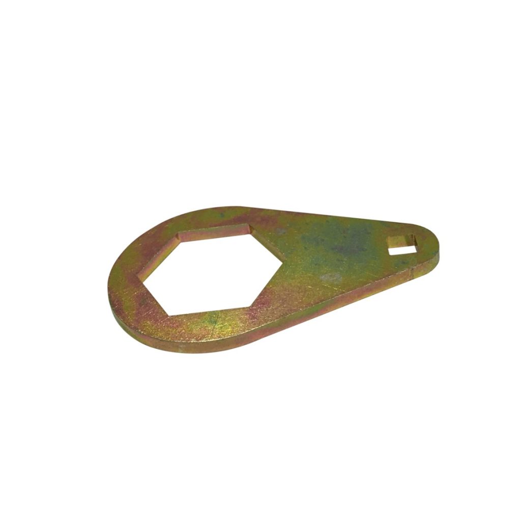 Ключ за заключване на съединител на компресор за климатик, 46mm. Този инструмент пасва на голямата шестоъгълна гайка на шайбата на компресора за климатик, като ви дава достъп до централния болт на фитинга. Използвайте с гаечен ключ с 3/8″ задвижване.