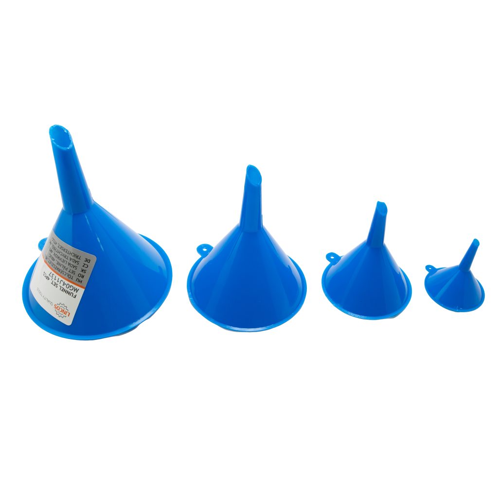 - Фunnel-ите в този комплект са изработени по високи стандарти, осигурявайки издръжливост и дълготрайна производителност. Те са направени от материали, подходящи за работа с течности до 60°, което ги прави универсални за широк спектър от приложения.