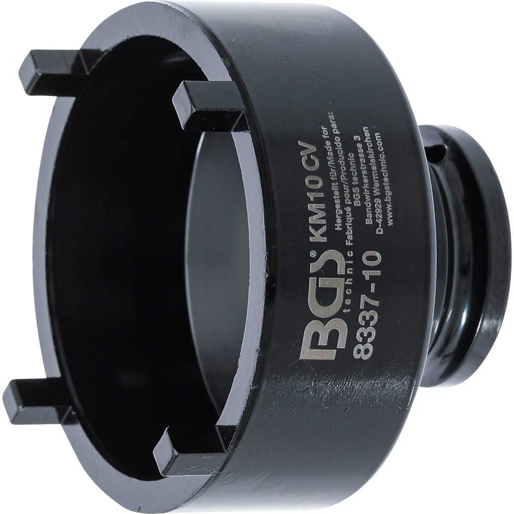 Този гнездо с външни зъби KM10 е специално проектиран за развиване и завиване на зъбни гайки в съответствие с стандарта DIN 981. Идеален за употреба на валове, захващащи втулки и втулки за изтегляне, той осигурява прецизно управление и сигурна работа.