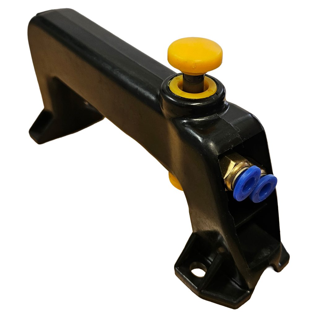 Пневматично управлявана ръкохватка за закрепване на монтажната глава на гумомонтажни машини.