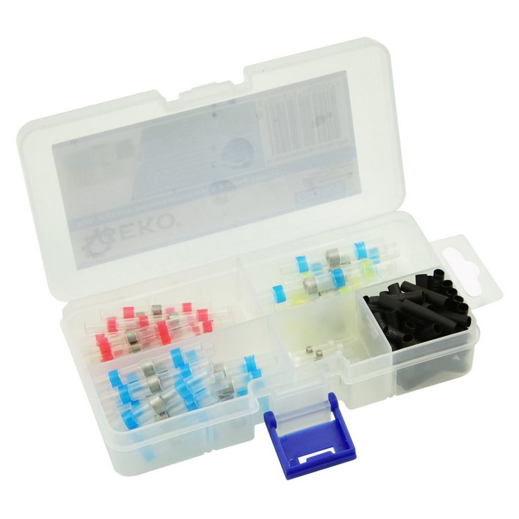 Комплект от водоустойчиви термо свиваеми тръби с калай. Тръби от този тип са идеални за изграждане на електрически инсталации и ремонтиране на електрически инсталации в дома, автомобили, лодки, ремаркета и др. Използването на термо свиваеми тръби с калай позволява здраво и водоустойчиво свързване на два проводника, което е възможно благодарение на вътрешния слой лепило.