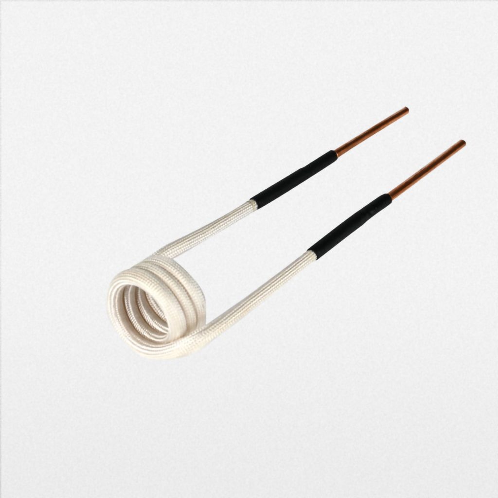 За нагряване на винтове, гайки, лагери и др. Спирална нагревателна намотка с диаметър 20mm в бял текстил за индукционни нагреватели.